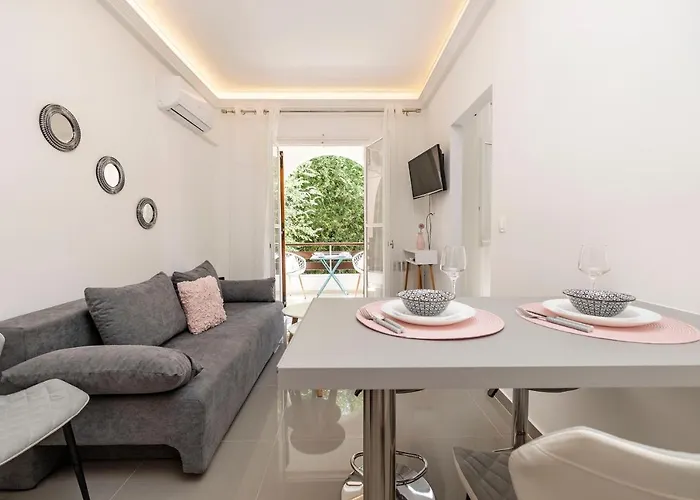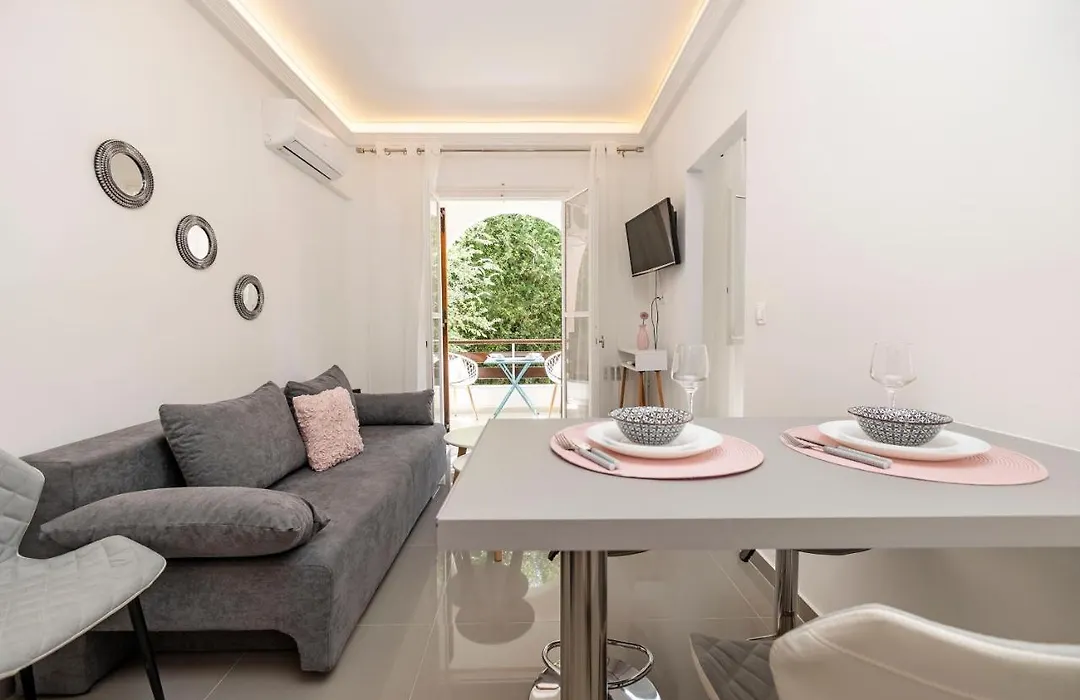 이 40m^2 아파트는 코르푸 국제공항 공항에서 1km 떨어져 있습니다. 아파트는 테라스에서 볼 수 있는 정원 전망을 자랑합니다.